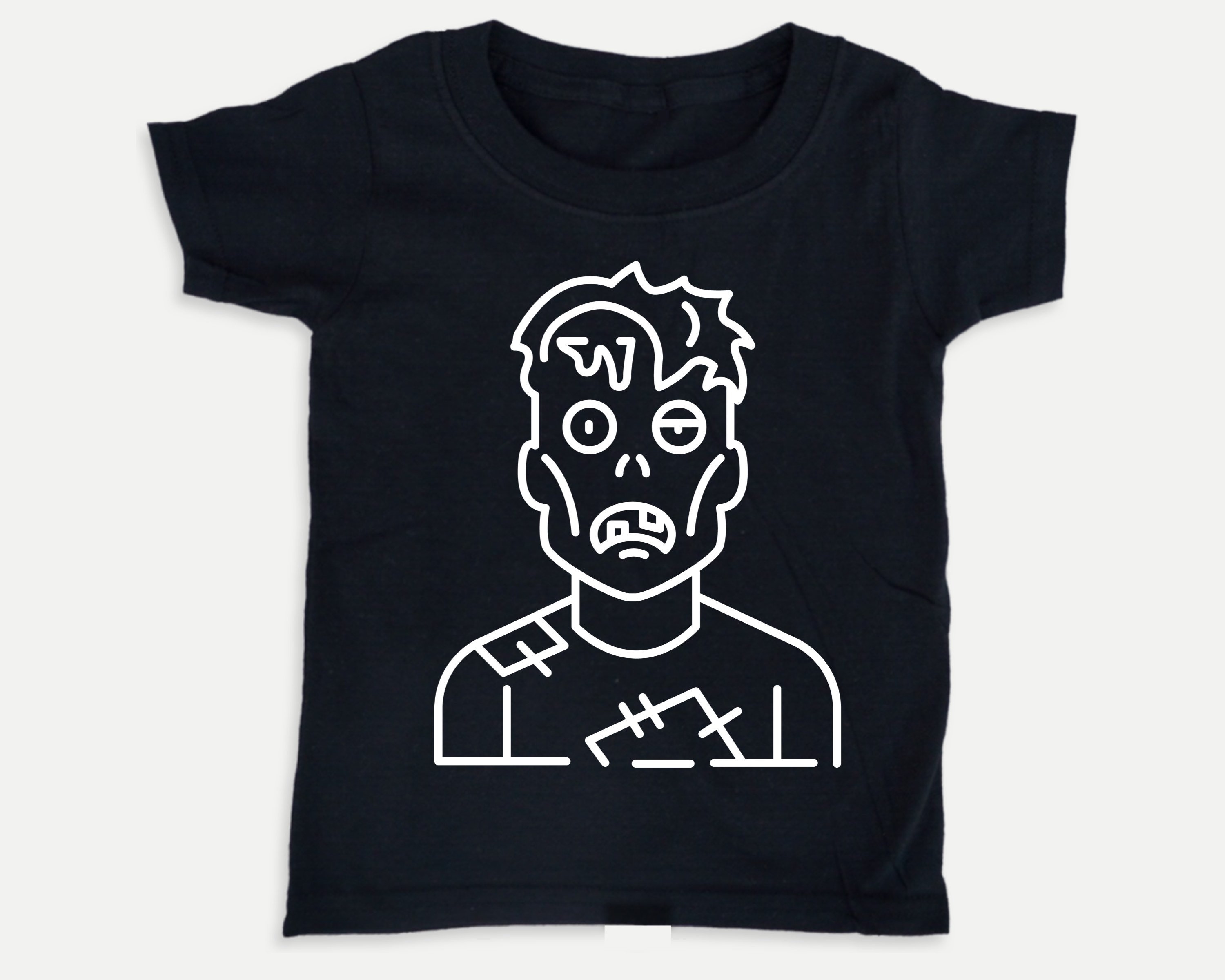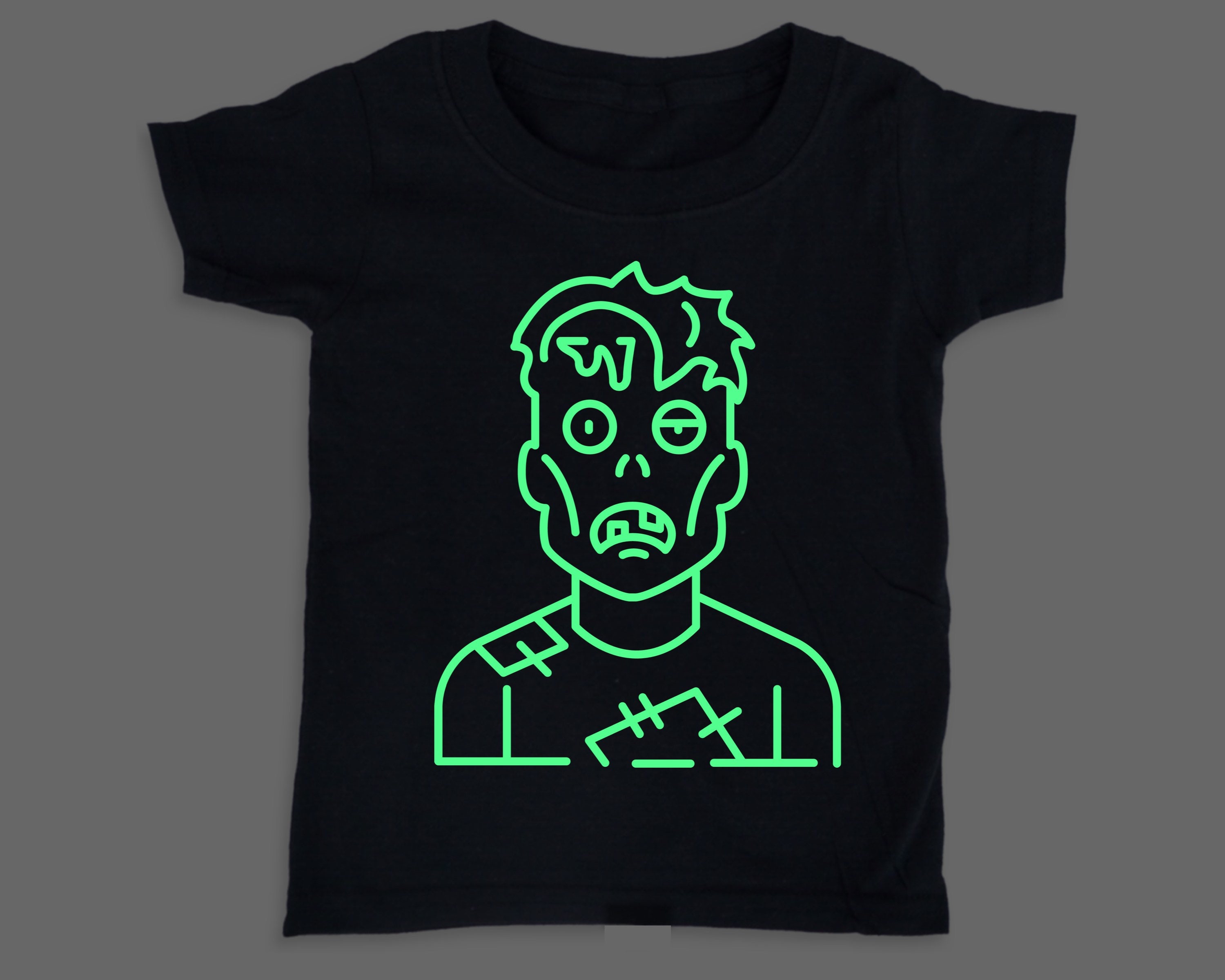 Glow-in-the-dark Halloween toddler or baby softstyle t-shirt featuring a zombie design. Take your little boy or girl out trick or treating in a stylish glow in the dark soft style toddler tee.