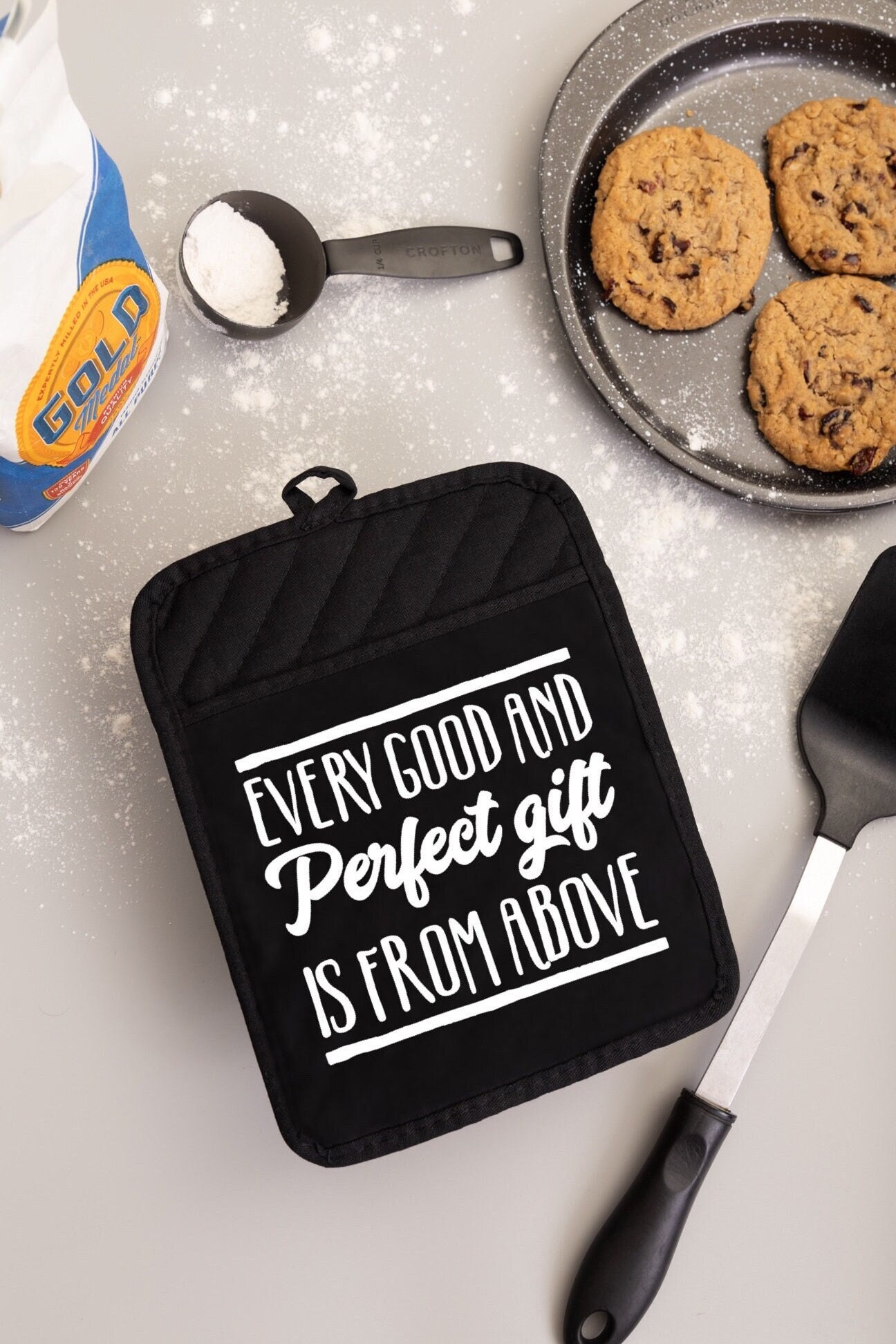 Lightweight Cotton hotpad with a pocket. The design is made from heat transfer vinyl. Decorate your kitchen and grace your dinner table with this beautiful bible verse themed potholder. Or delight your friends with this practical and pretty hotpad as a housewarming kitchen gift.