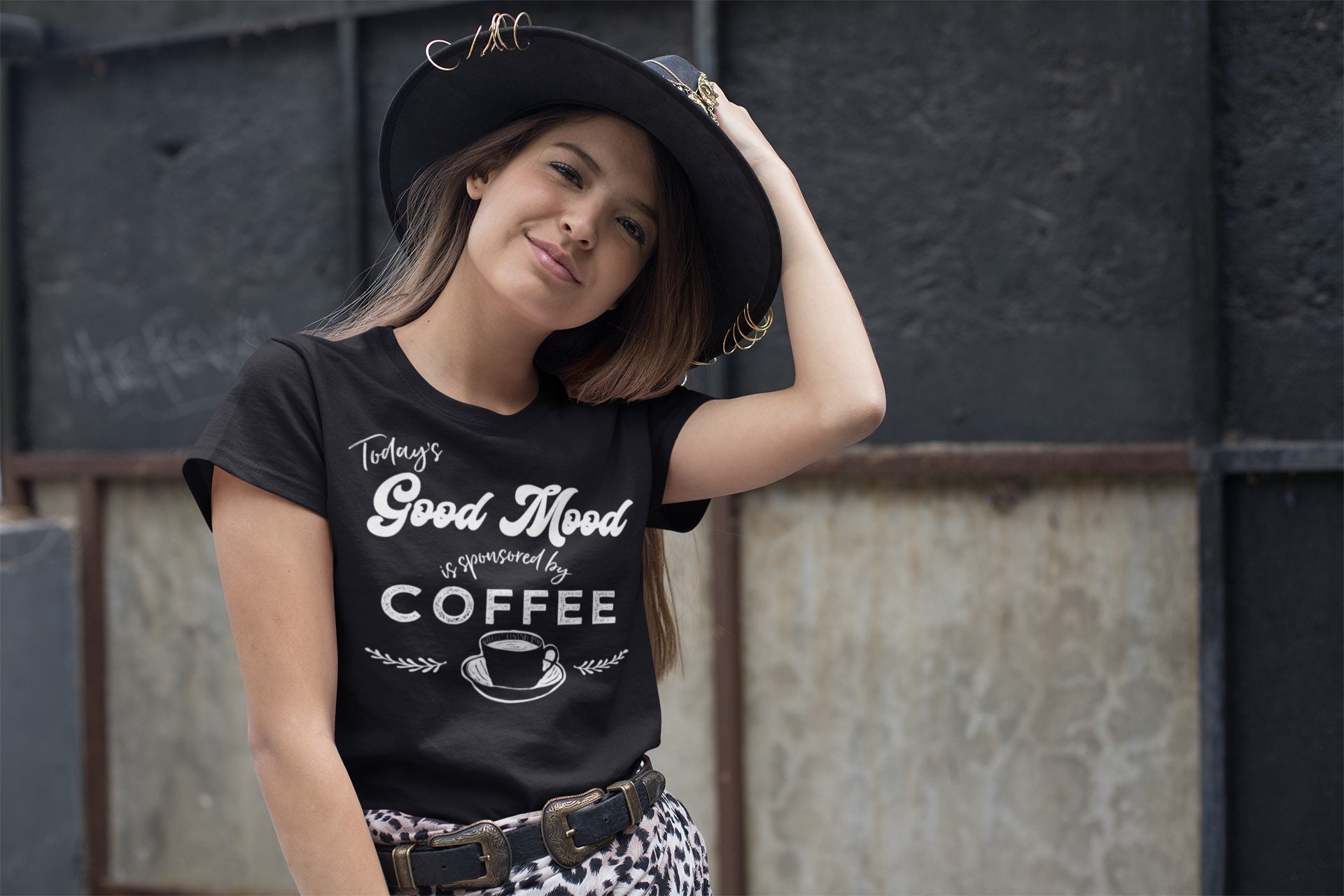 Today’s mood is sponsored by coffee unisex or ladies cut graphic tee with a black or white vinyl design (see listing photos for a color chart). Perfect for your coffee lover self or friend!