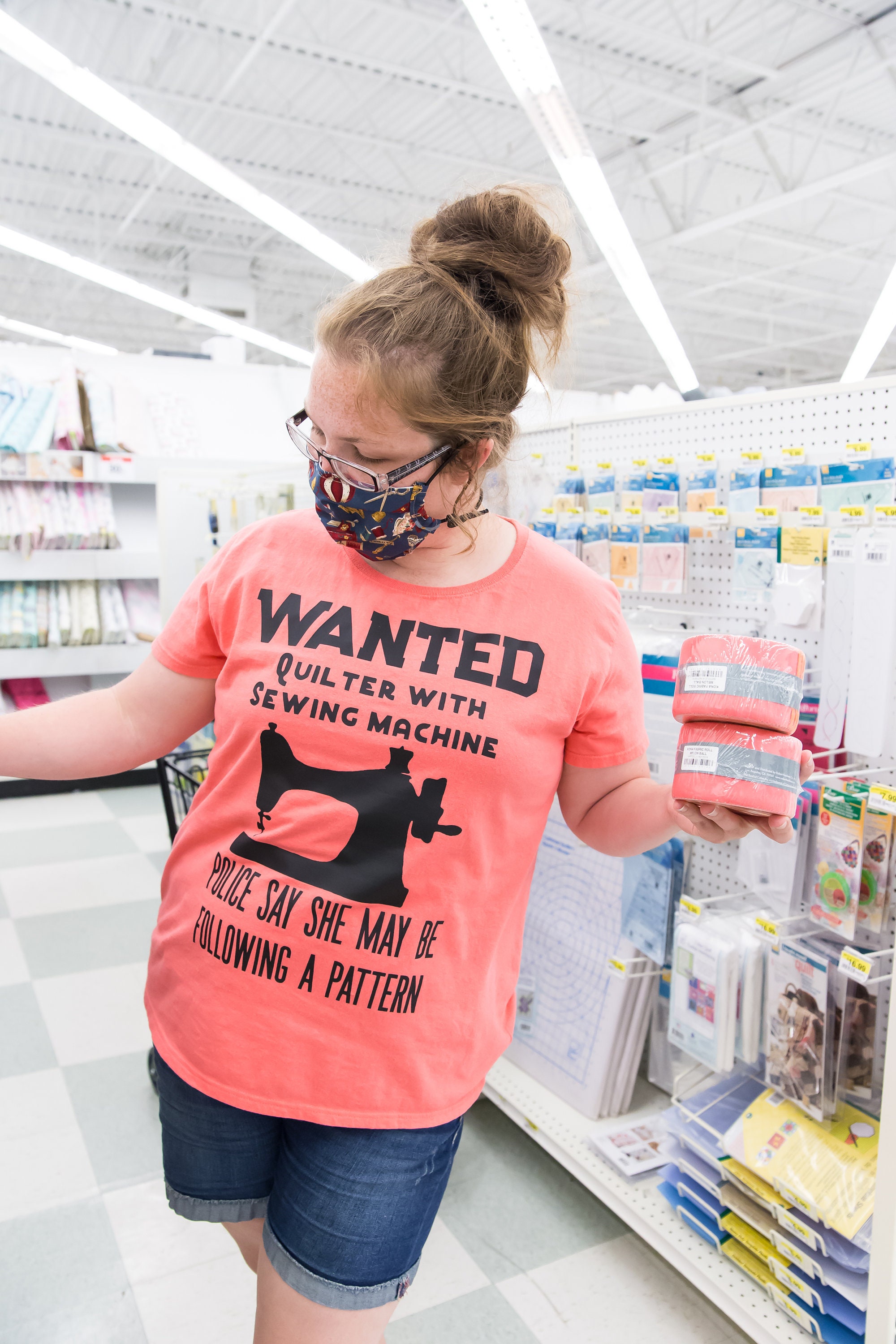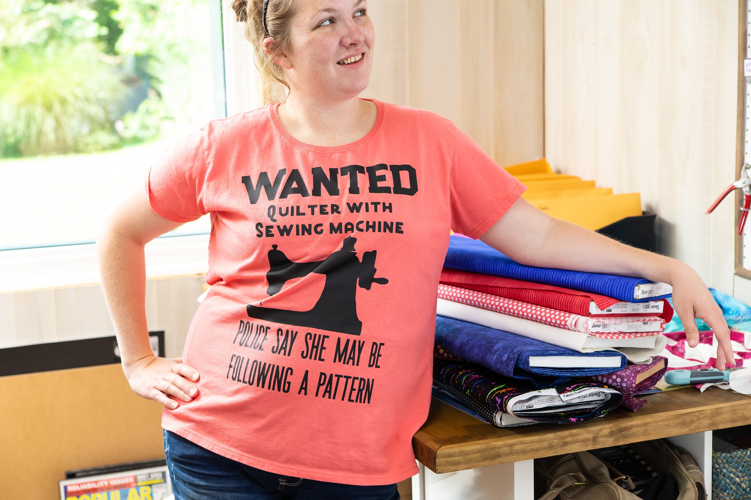 WANTED Quilter with a Sewing Machine funny unisex or ladies cut graphic tee with a black or white vinyl design (see listing photos for a color chart). Perfect for your quilting self, mom, or grandma!