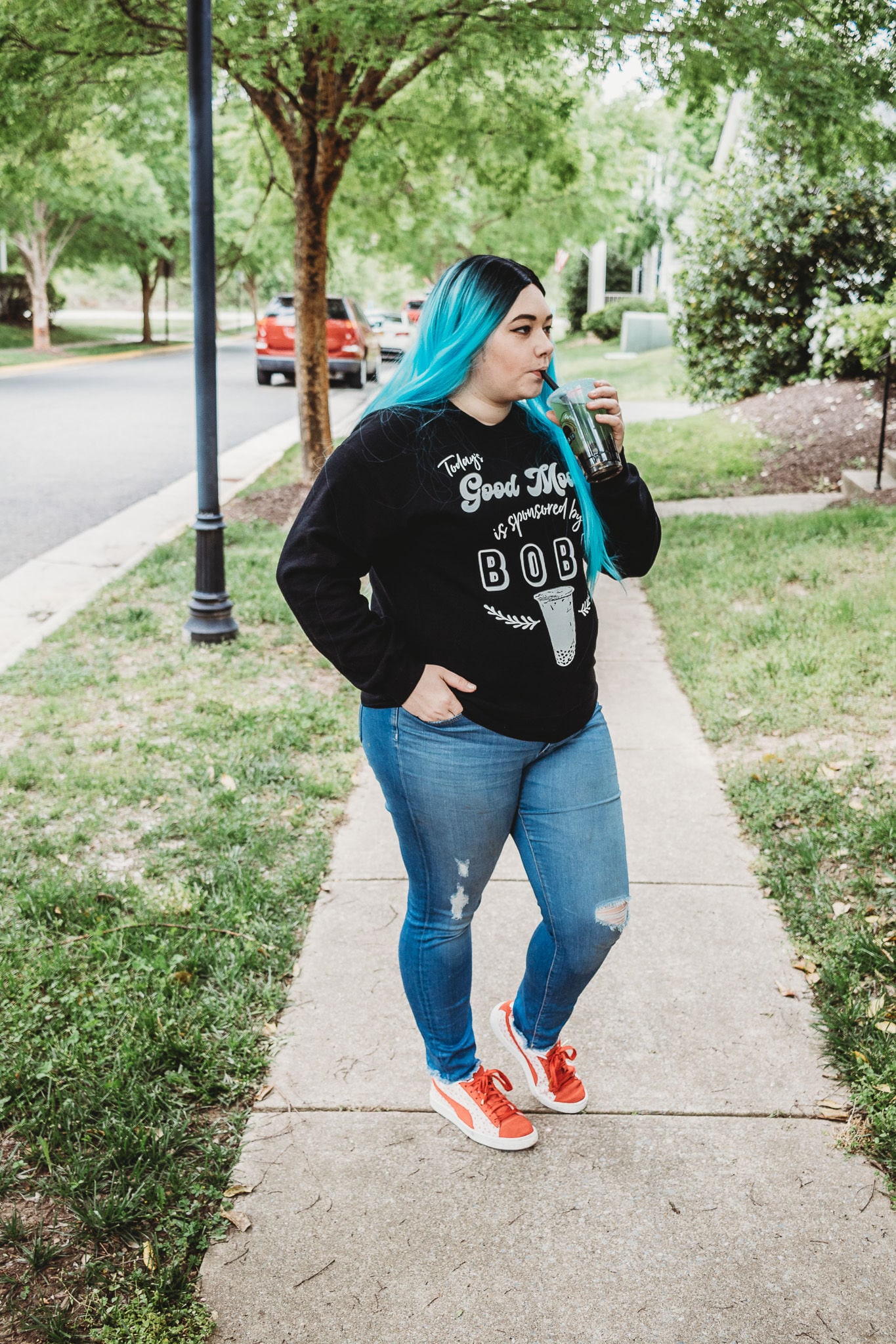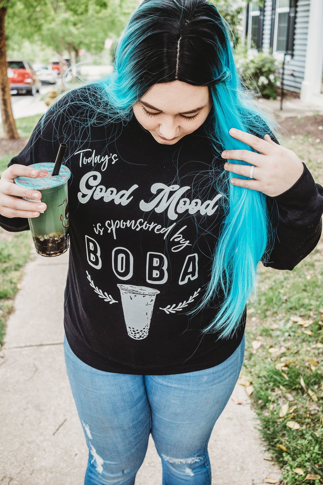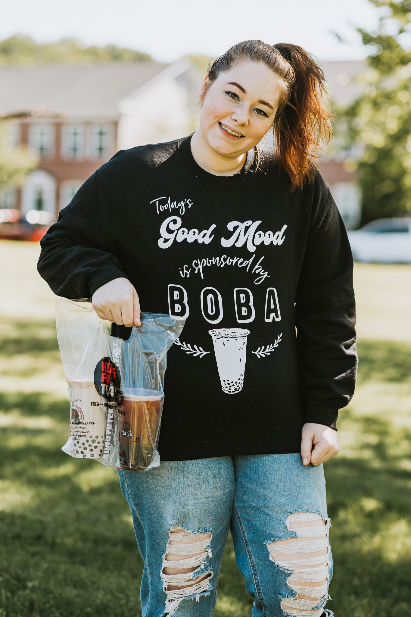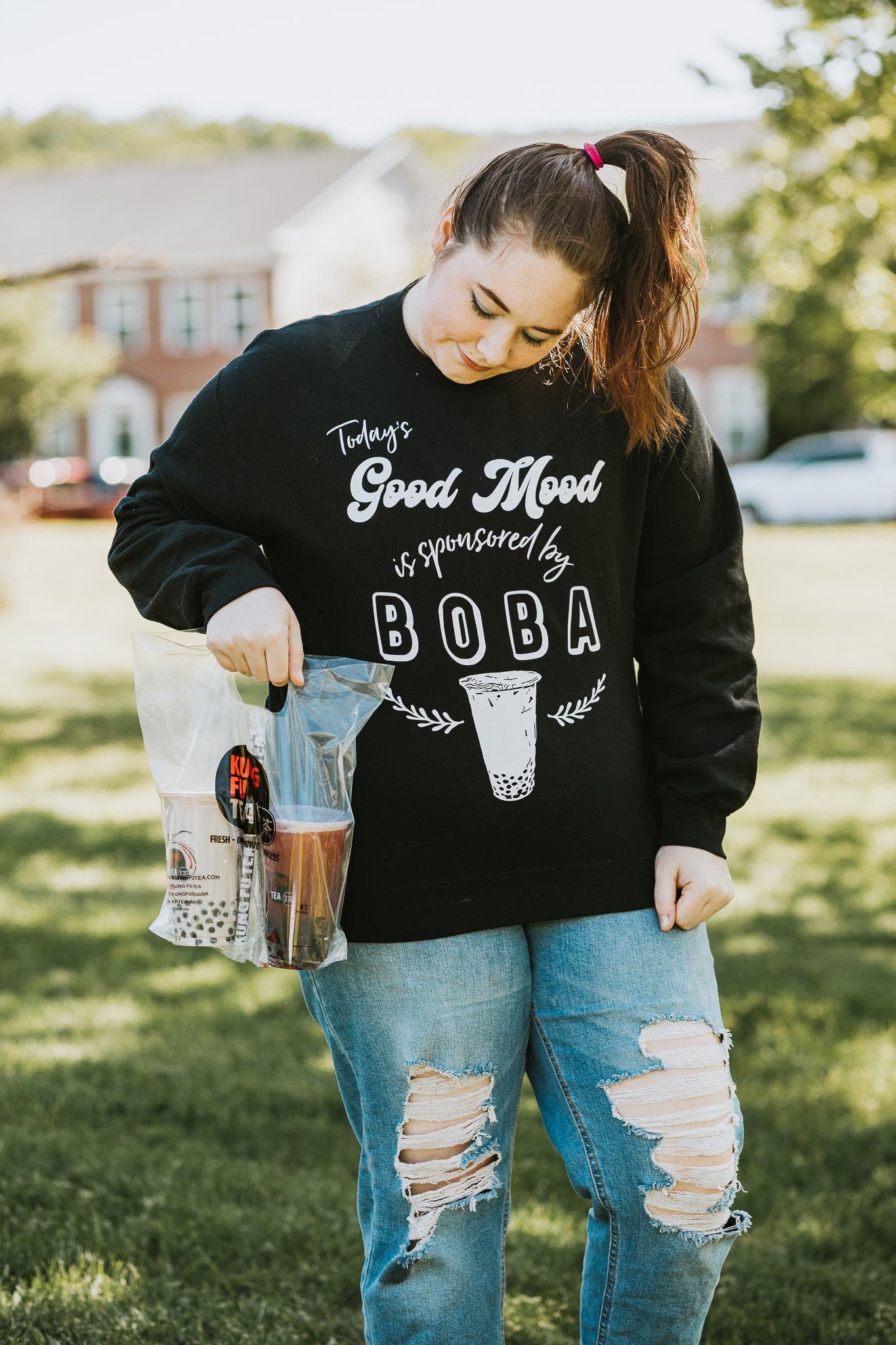 Today’s mood is sponsored by boba unisex pullover sweatshirt with a white vinyl design. Whether you call it bubble tea, milk tea, or boba; this boba lover's sweater will be perfect for yourself or a gift for a friend!