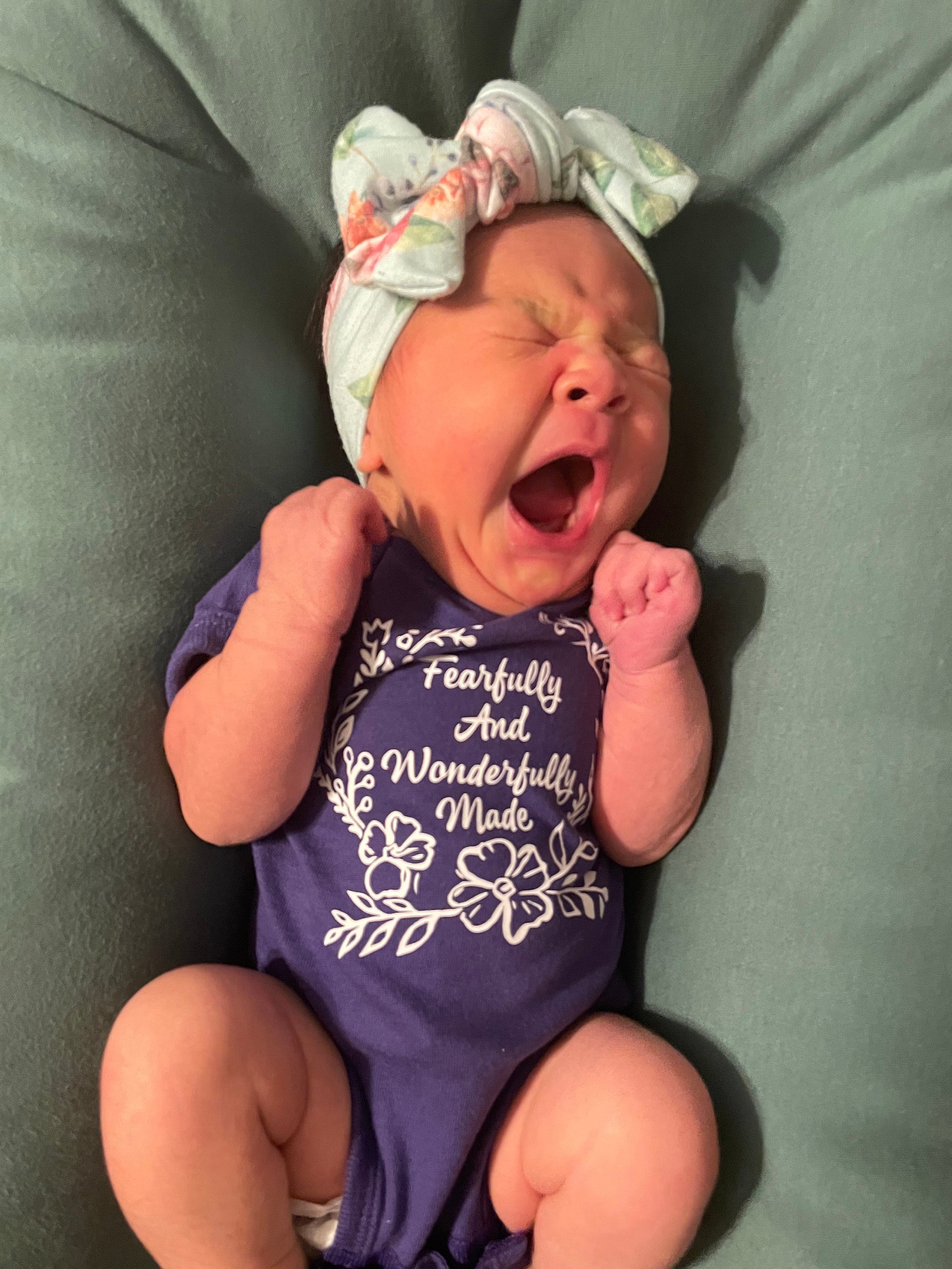 The parents loved the verse on the onesie and can’t wait til she can wear it.