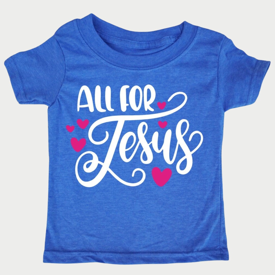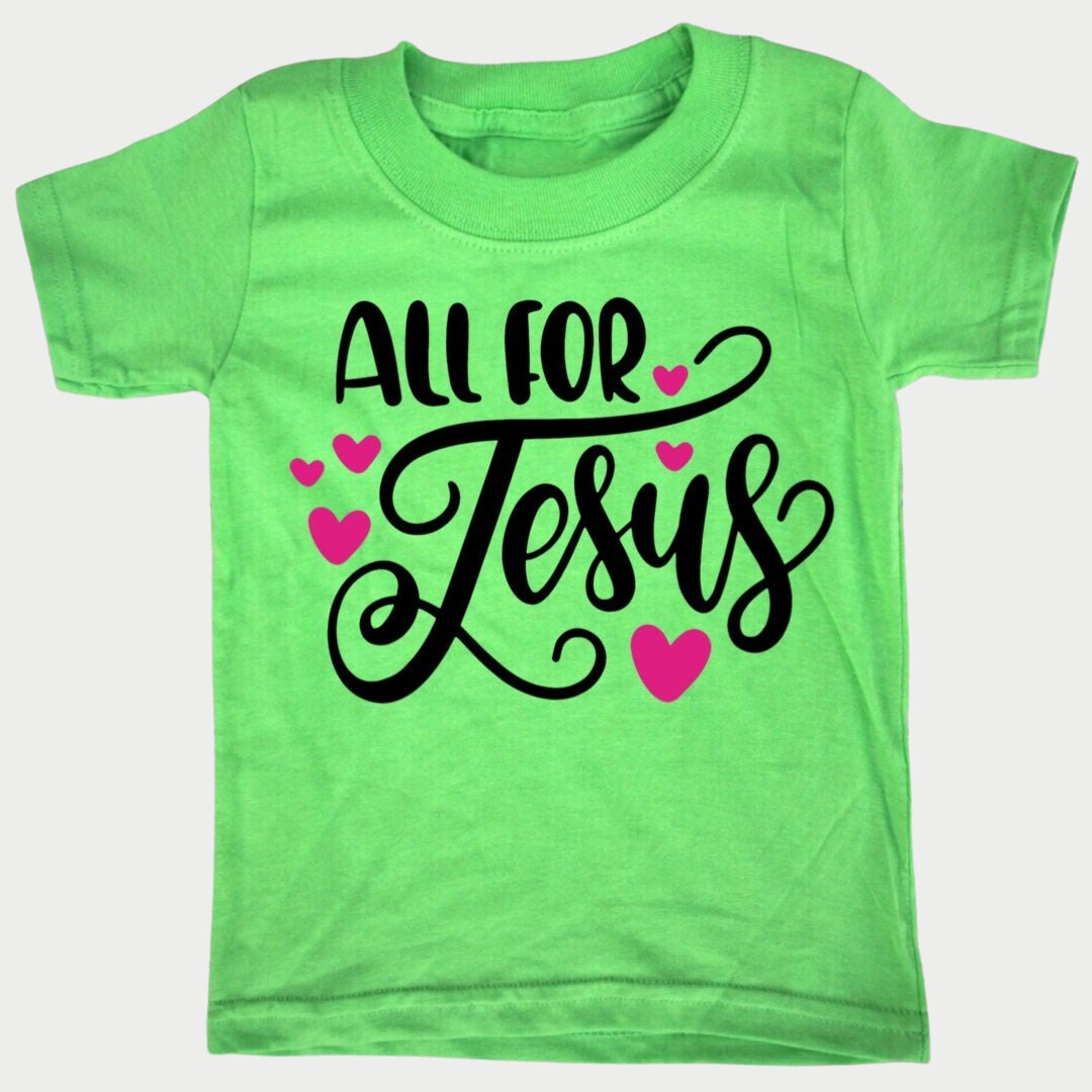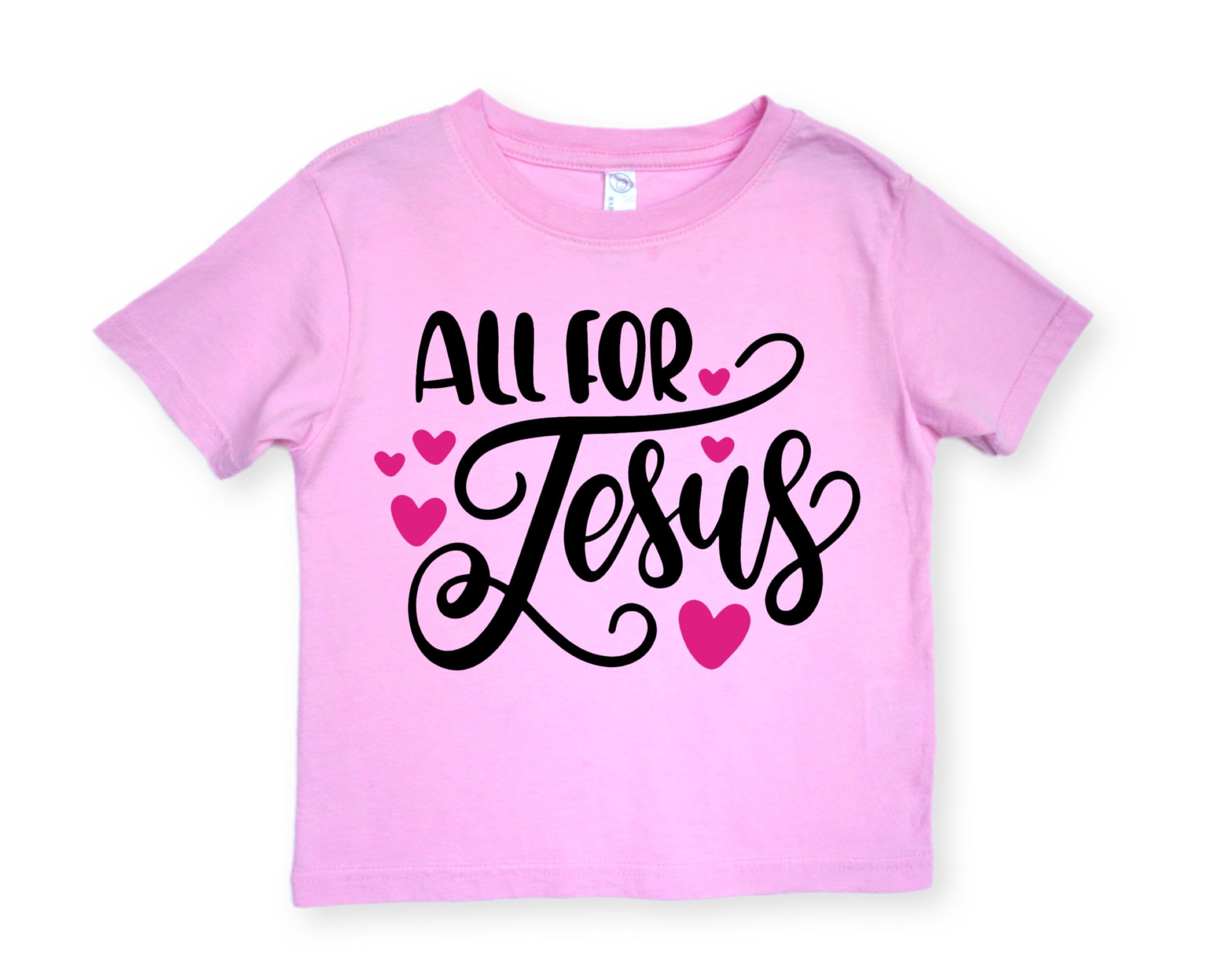 Christian toddler tshirt featuring All for Jesus design on a softstyle toddler tee. Your child or grandchild will be the talk of the Sunday School dressed in this Bible-blazened toddler tee!