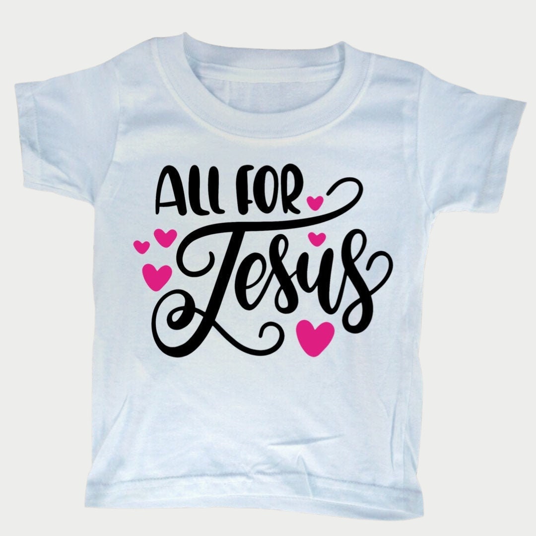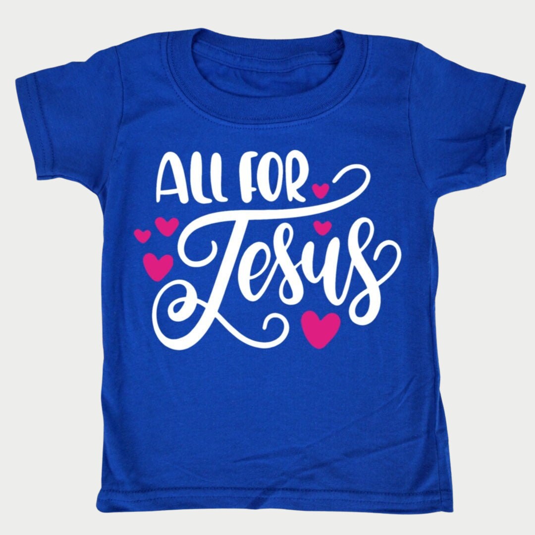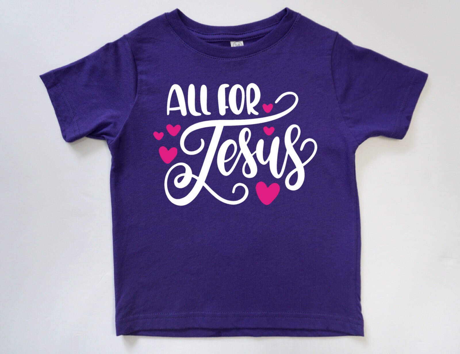 Christian toddler tshirt featuring All for Jesus design on a softstyle toddler tee. Your child or grandchild will be the talk of the Sunday School dressed in this Bible-blazened toddler tee!