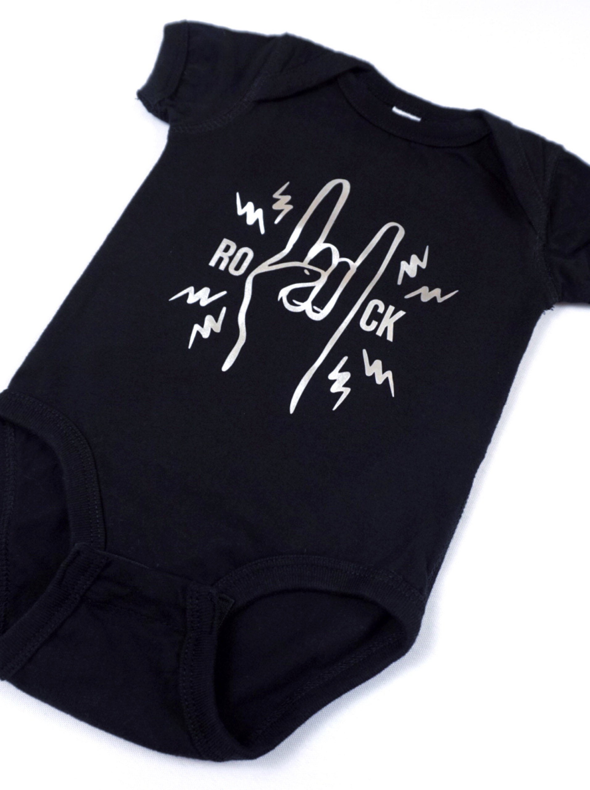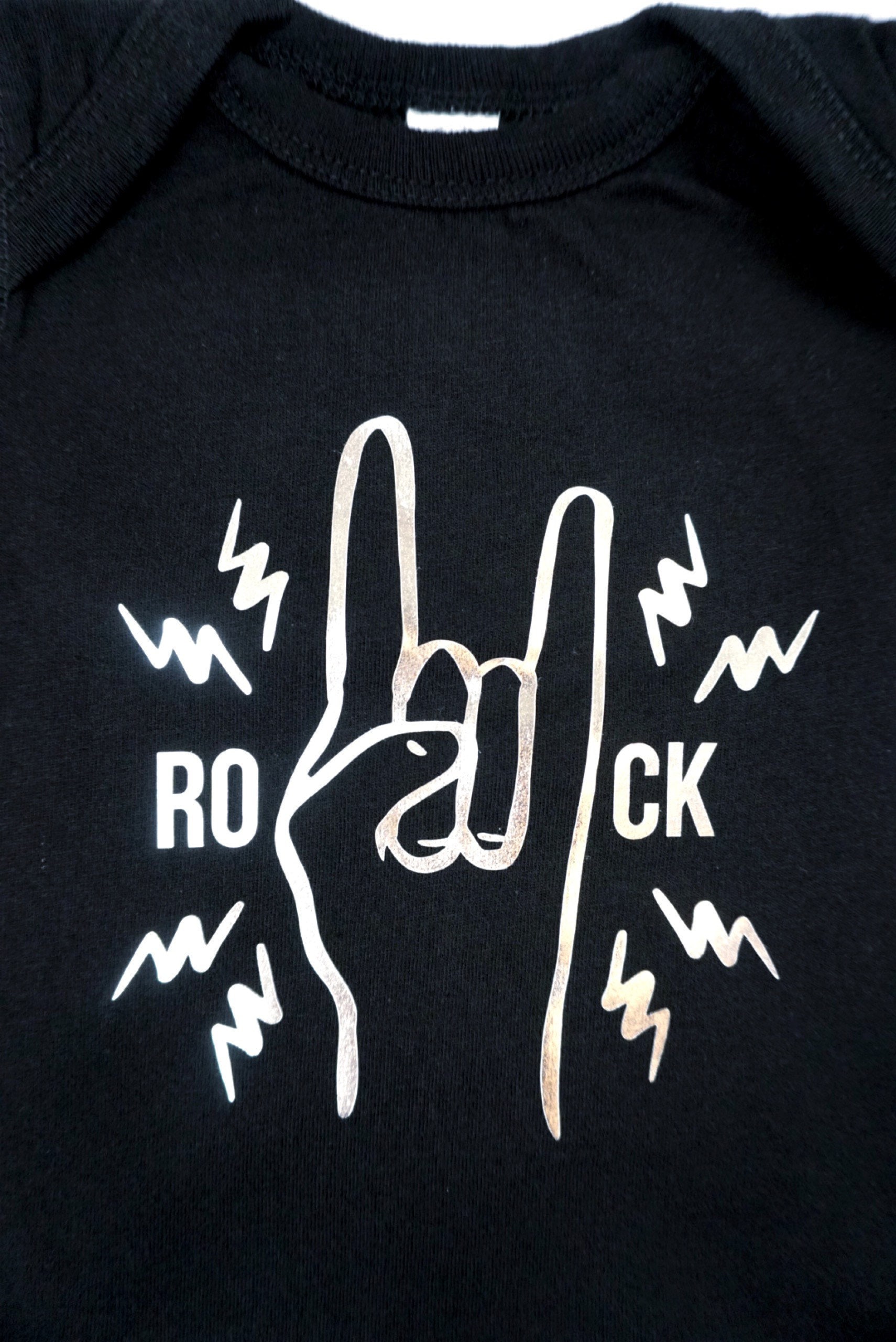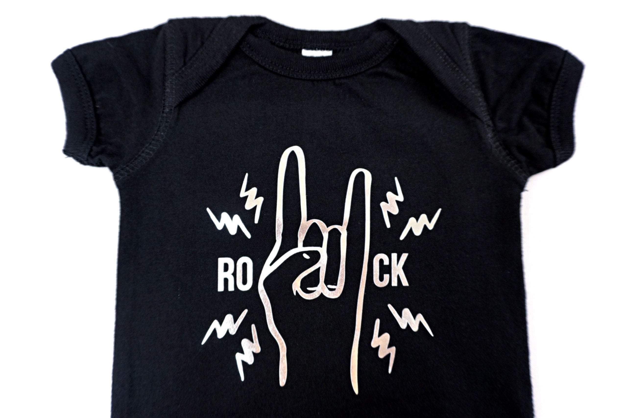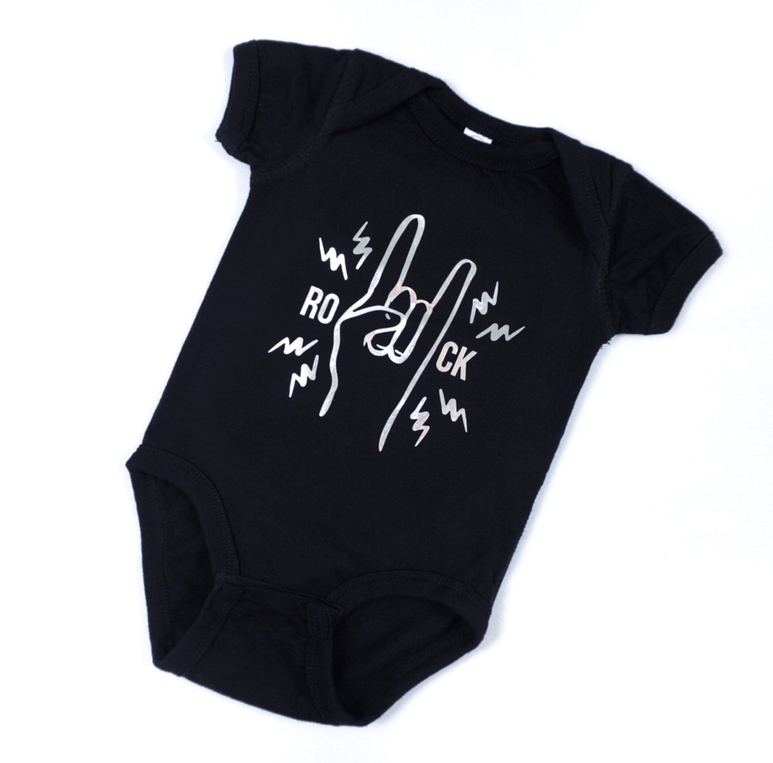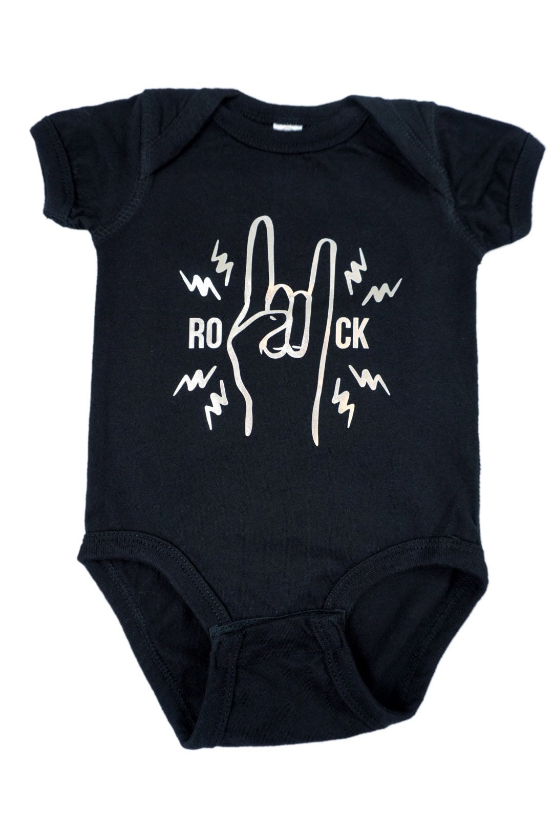 Funny rock music baby bodysuit. A perfect gift for a band member or Rock and Roll baby shower.