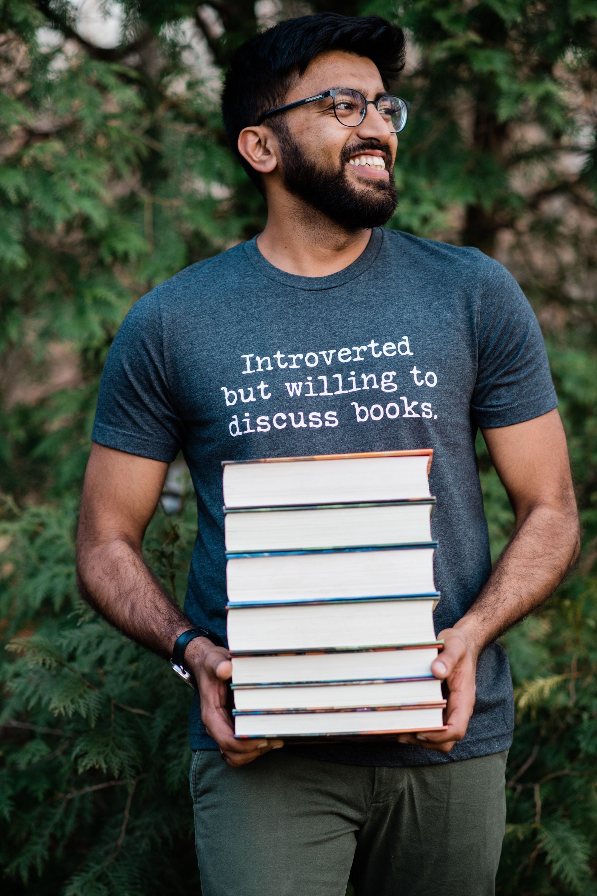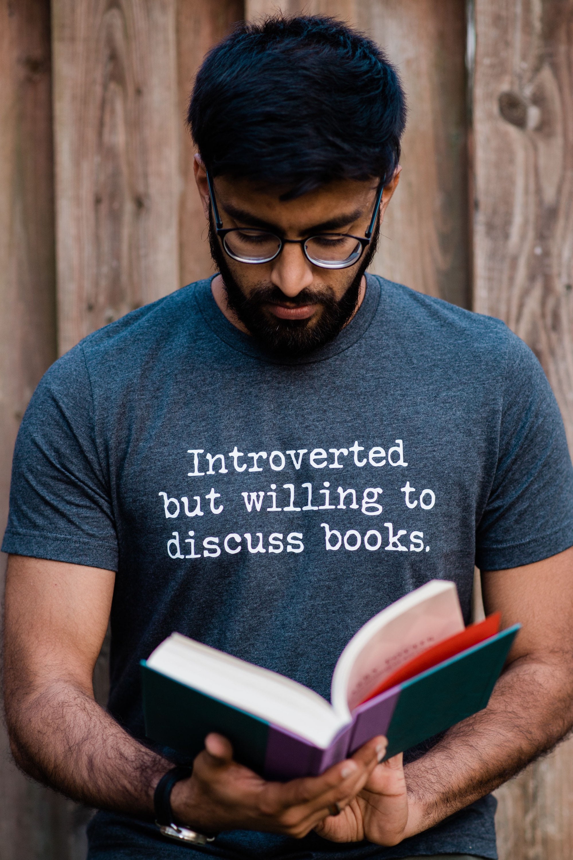 Do you prefer the company of books over people? Well then this shirt is for you! This soft cotton t-shirt is available in unisex cut. For a more fitted look in the unisex style, ladies may want to order a size down.