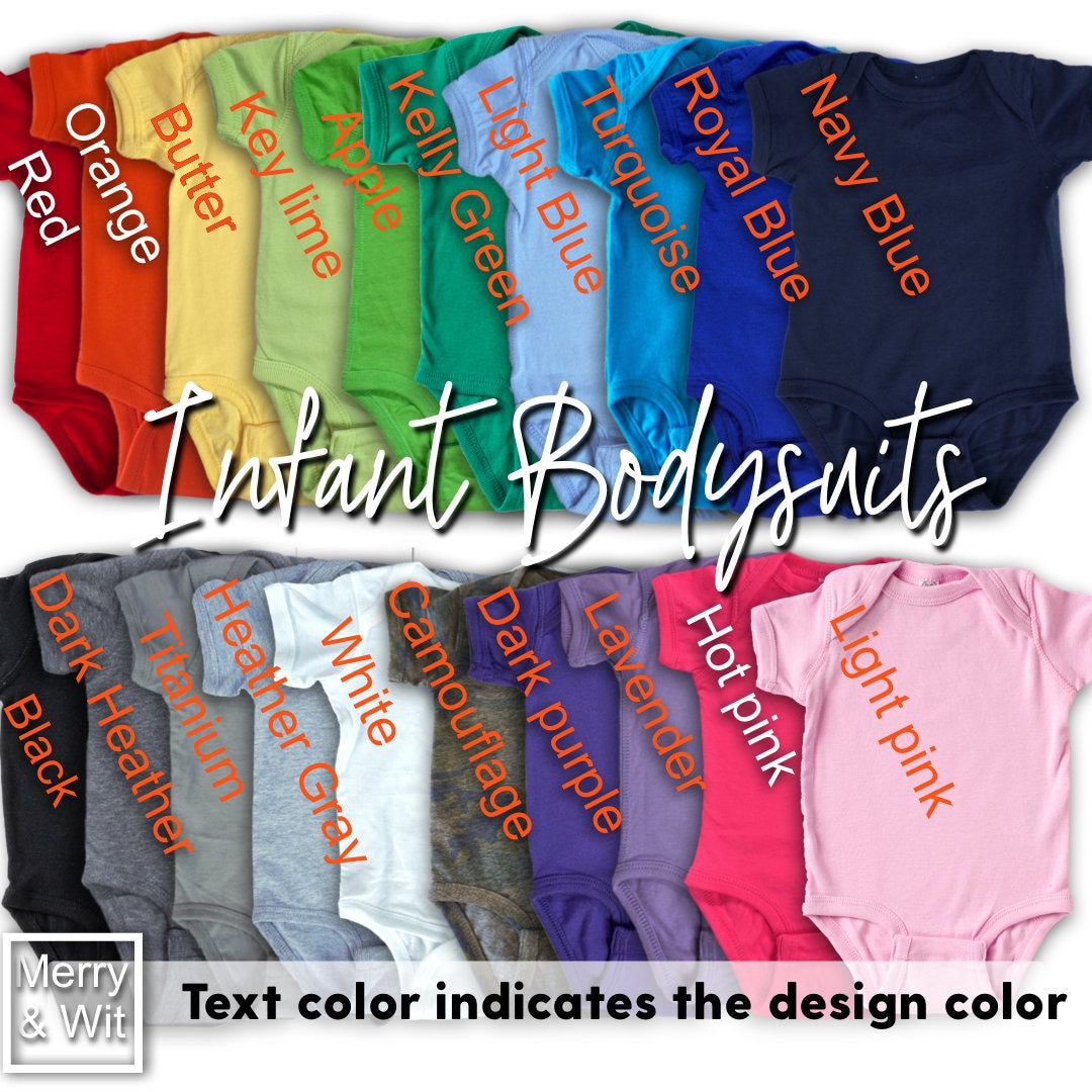 This listing is for a soft-style baby bodysuit with a white or orange vinyl design.