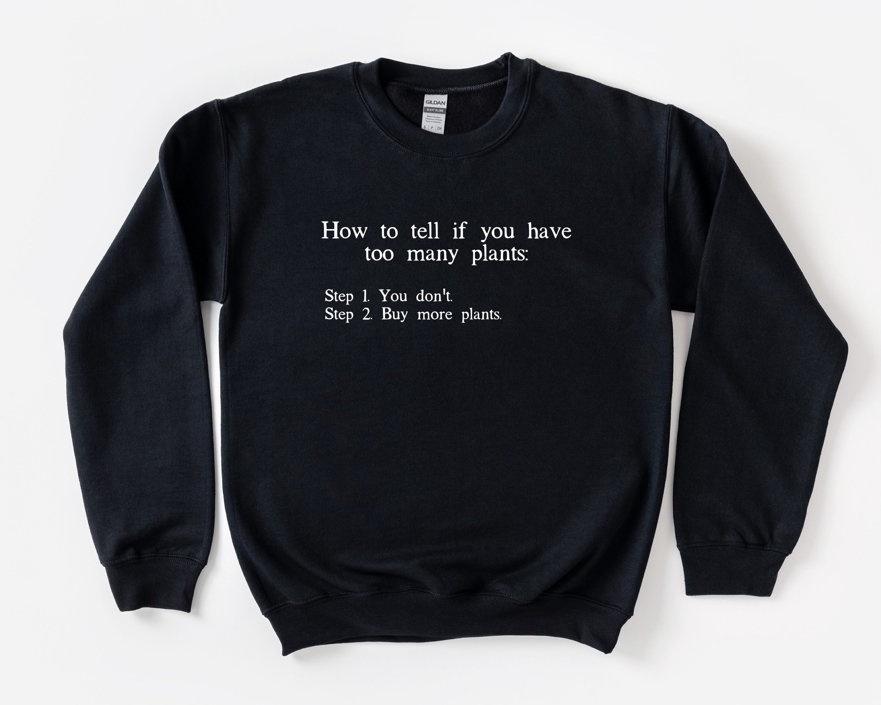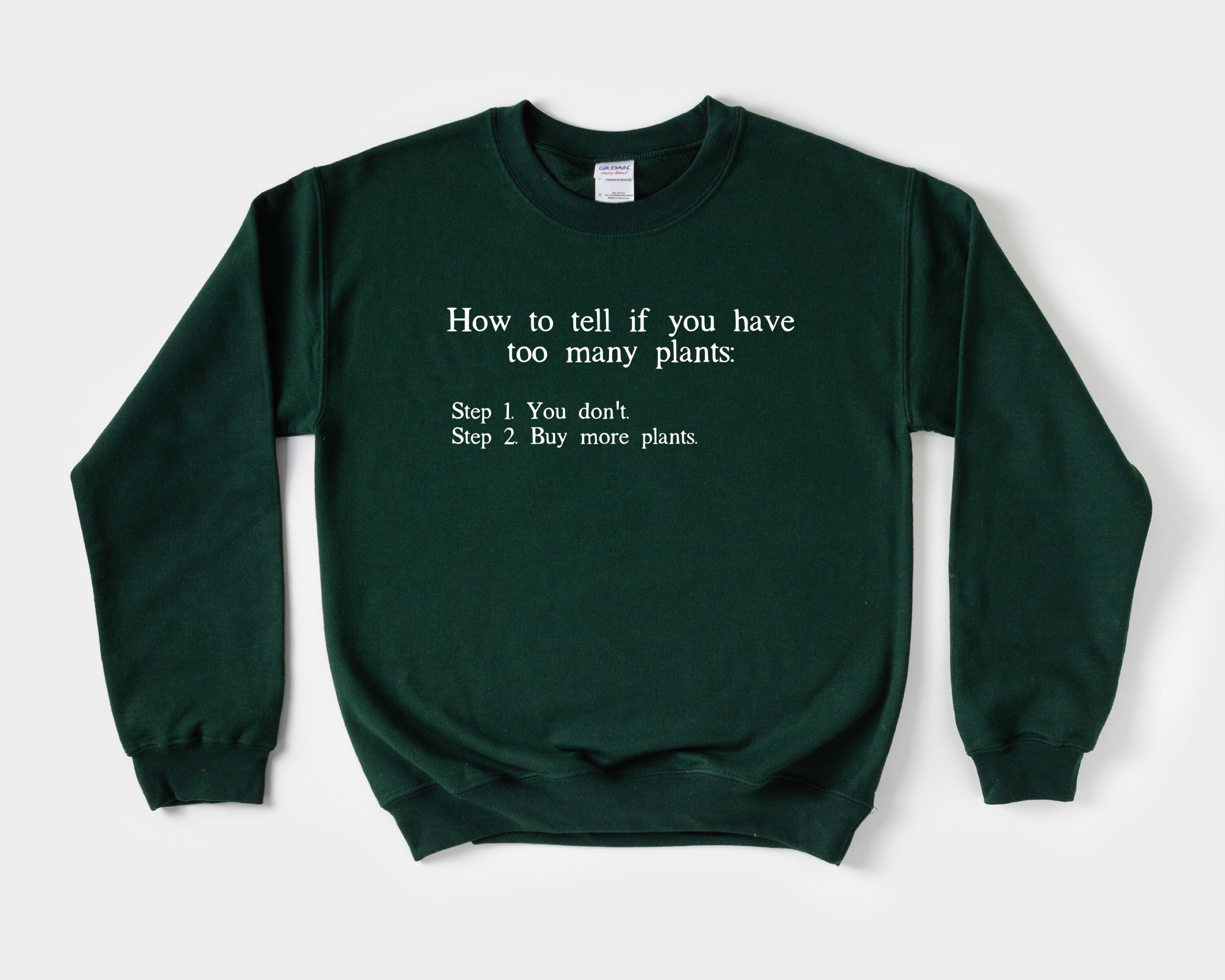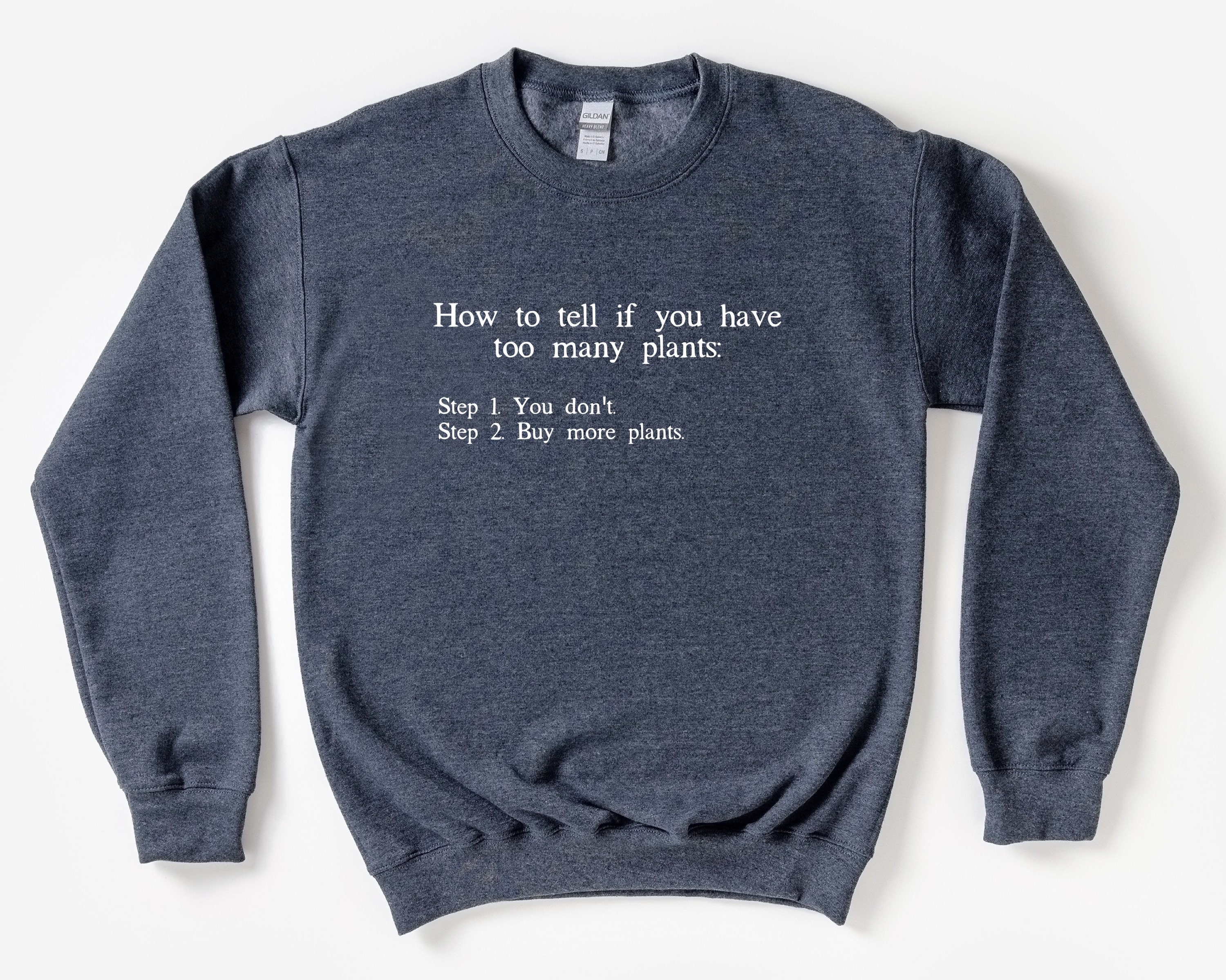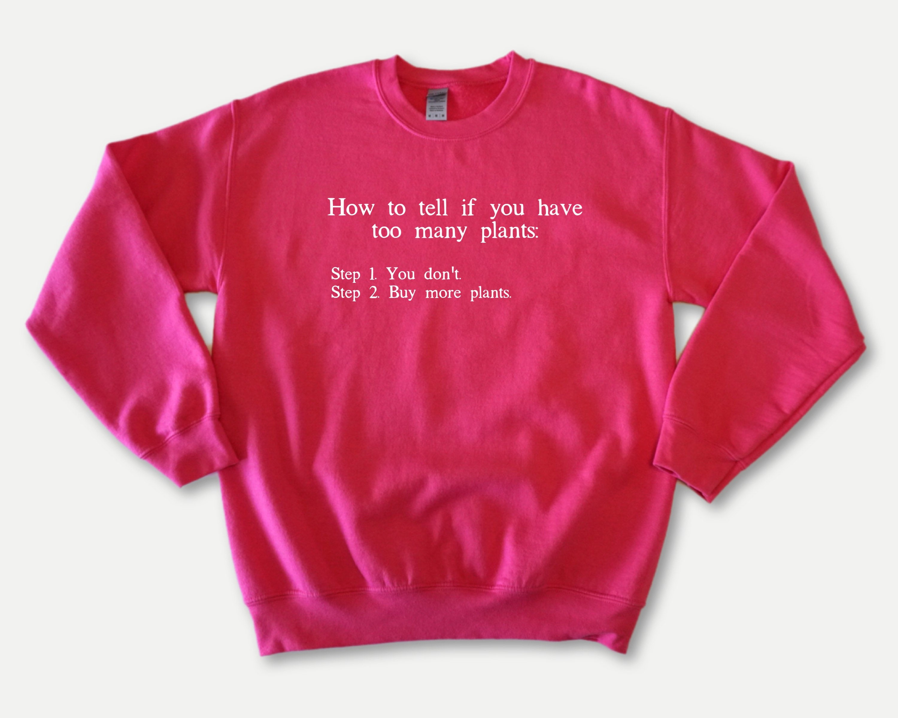 How to Tell if You Have Too Many Plants unisex soft cotton sweatshirt with white text. Perfect for your plant loving self or friend! This would be a great gift for your crazy house plant friend to open this for Christmas. Or buy it for yourself to wear in your garden!