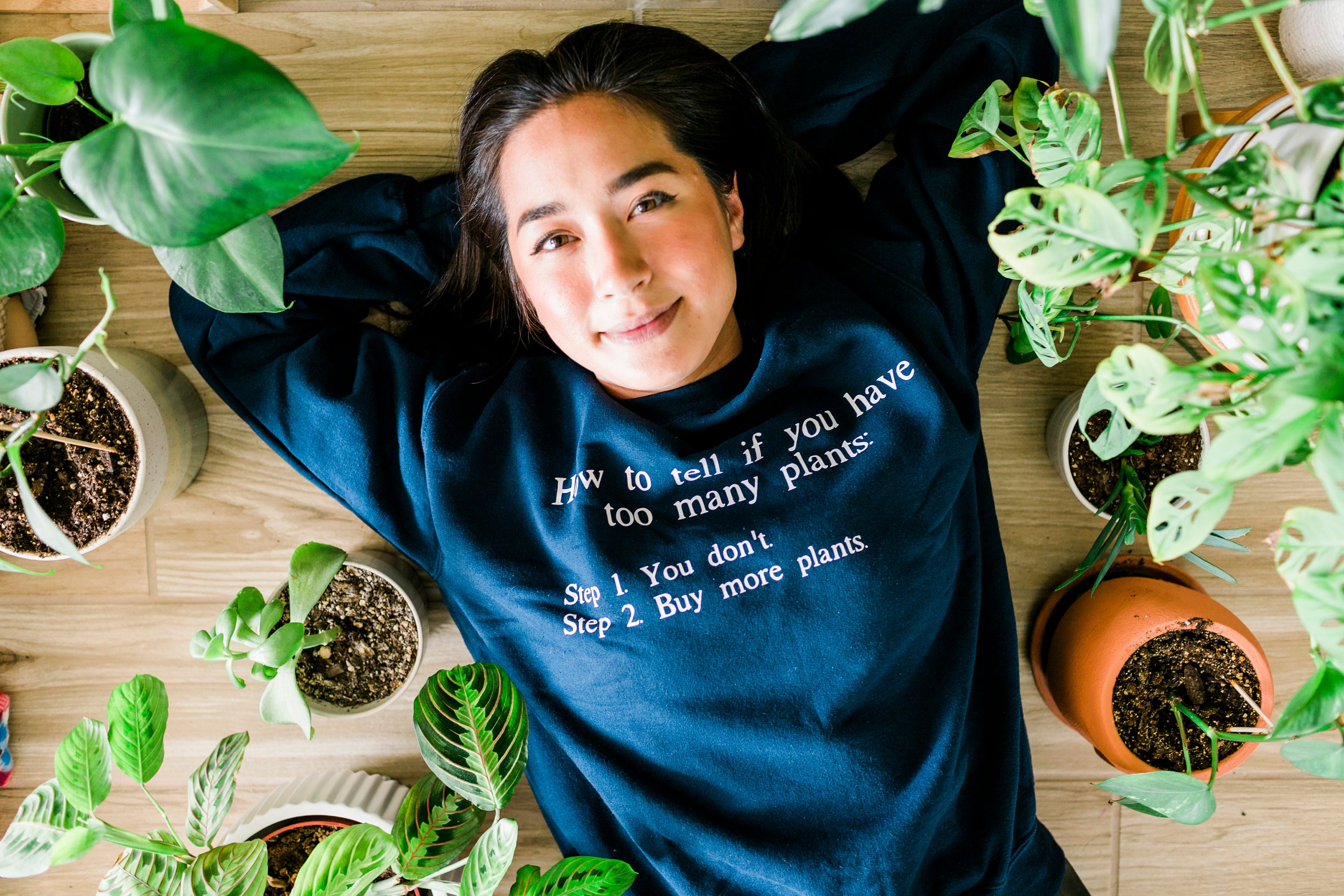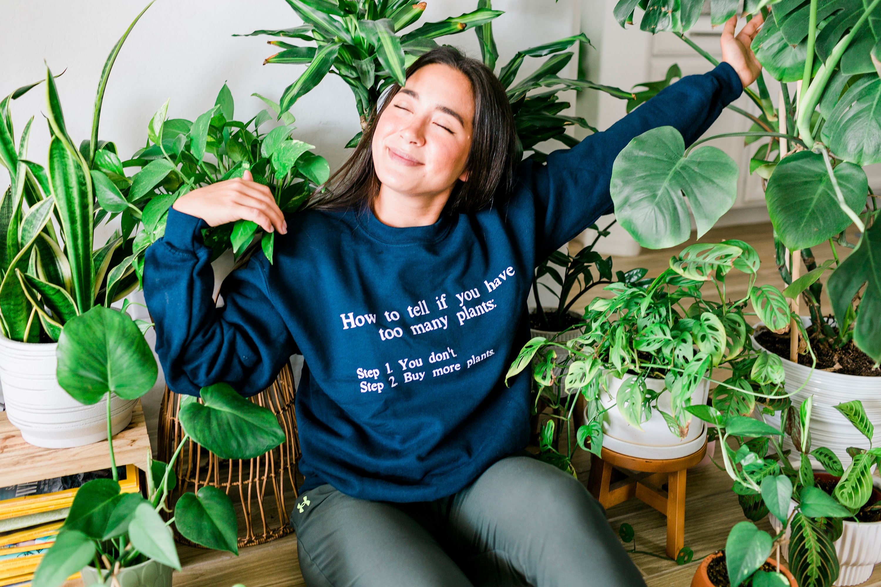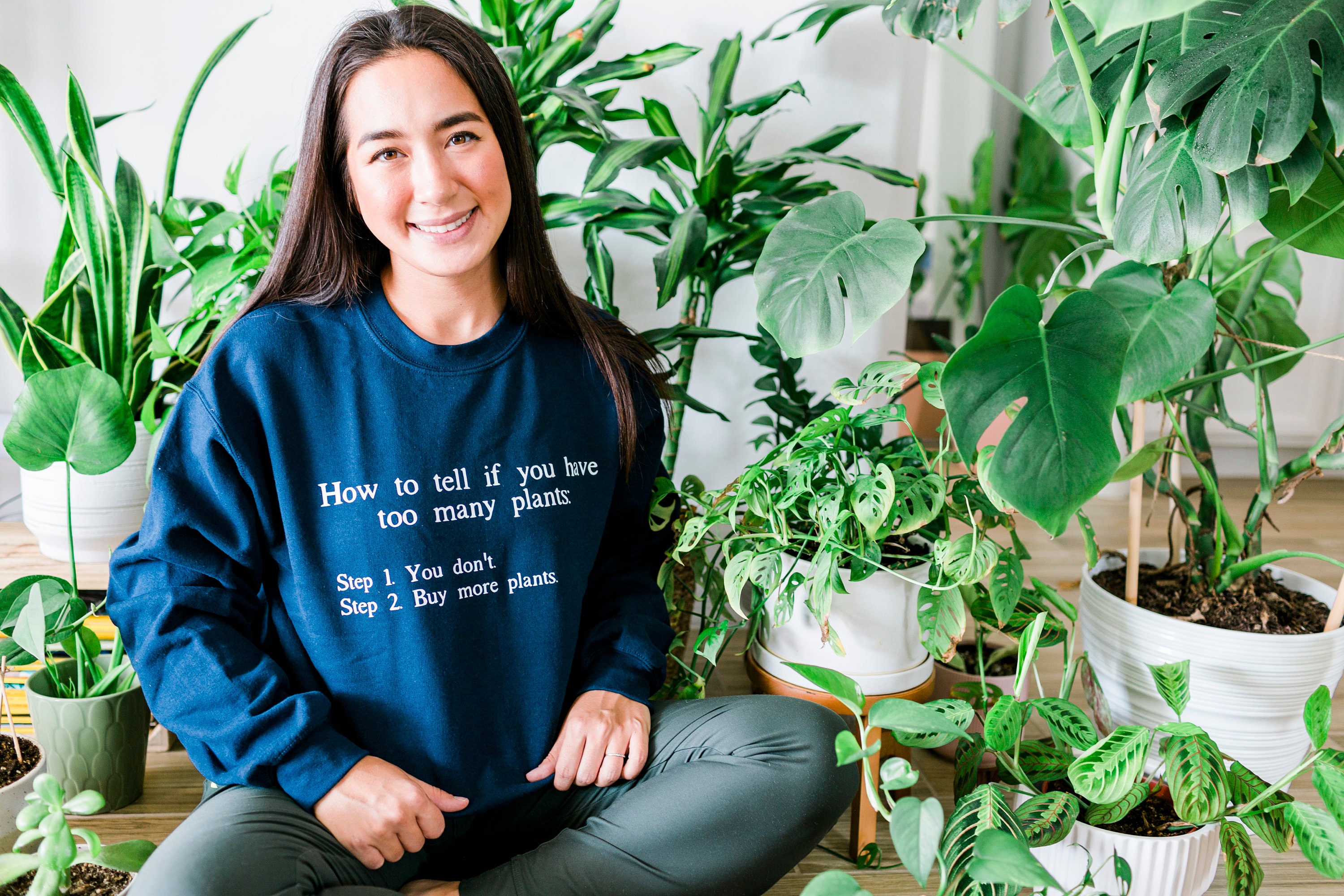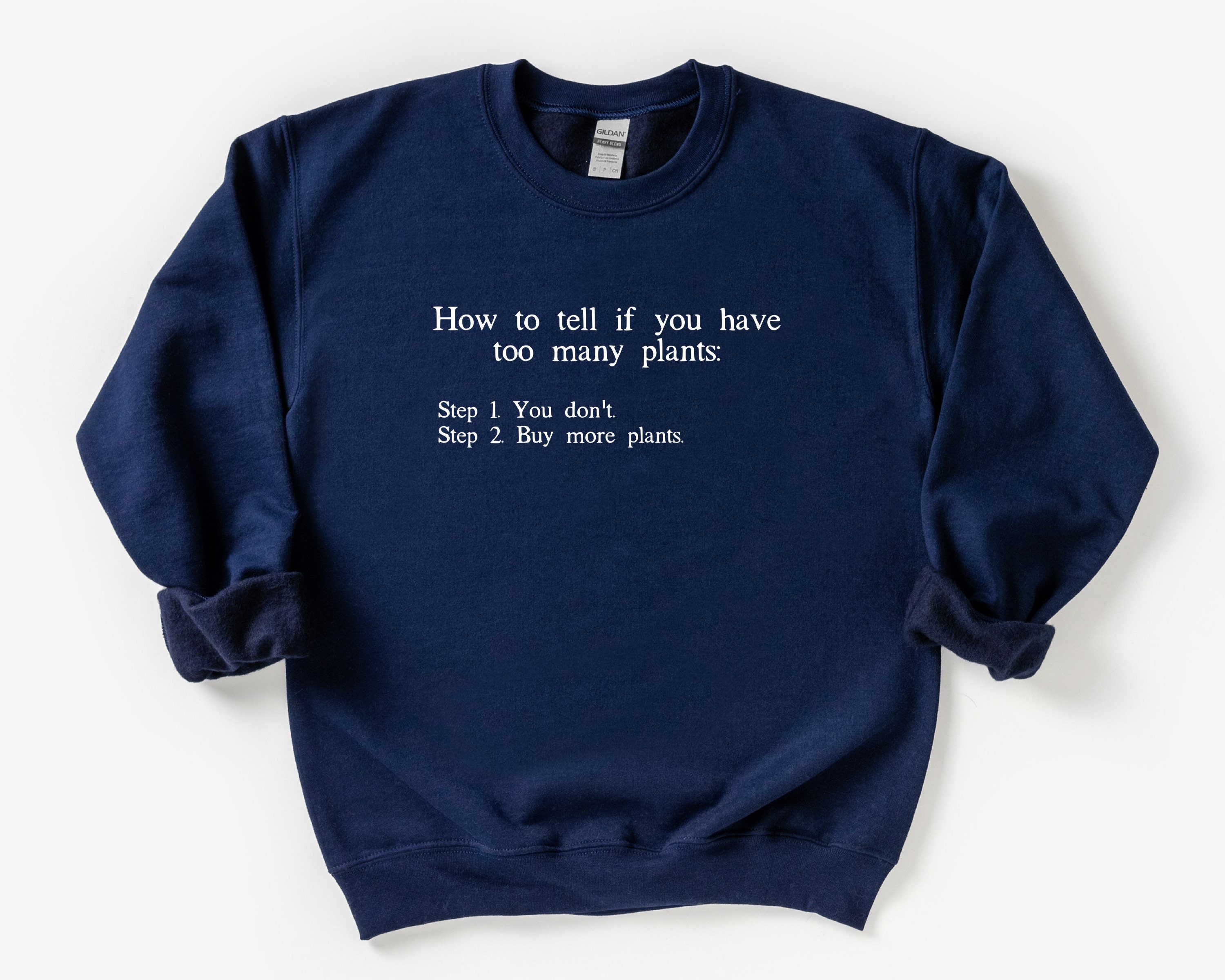 How to Tell if You Have Too Many Plants unisex soft cotton sweatshirt with white text. Perfect for your plant loving self or friend! This would be a great gift for your crazy house plant friend to open this for Christmas. Or buy it for yourself to wear in your garden!