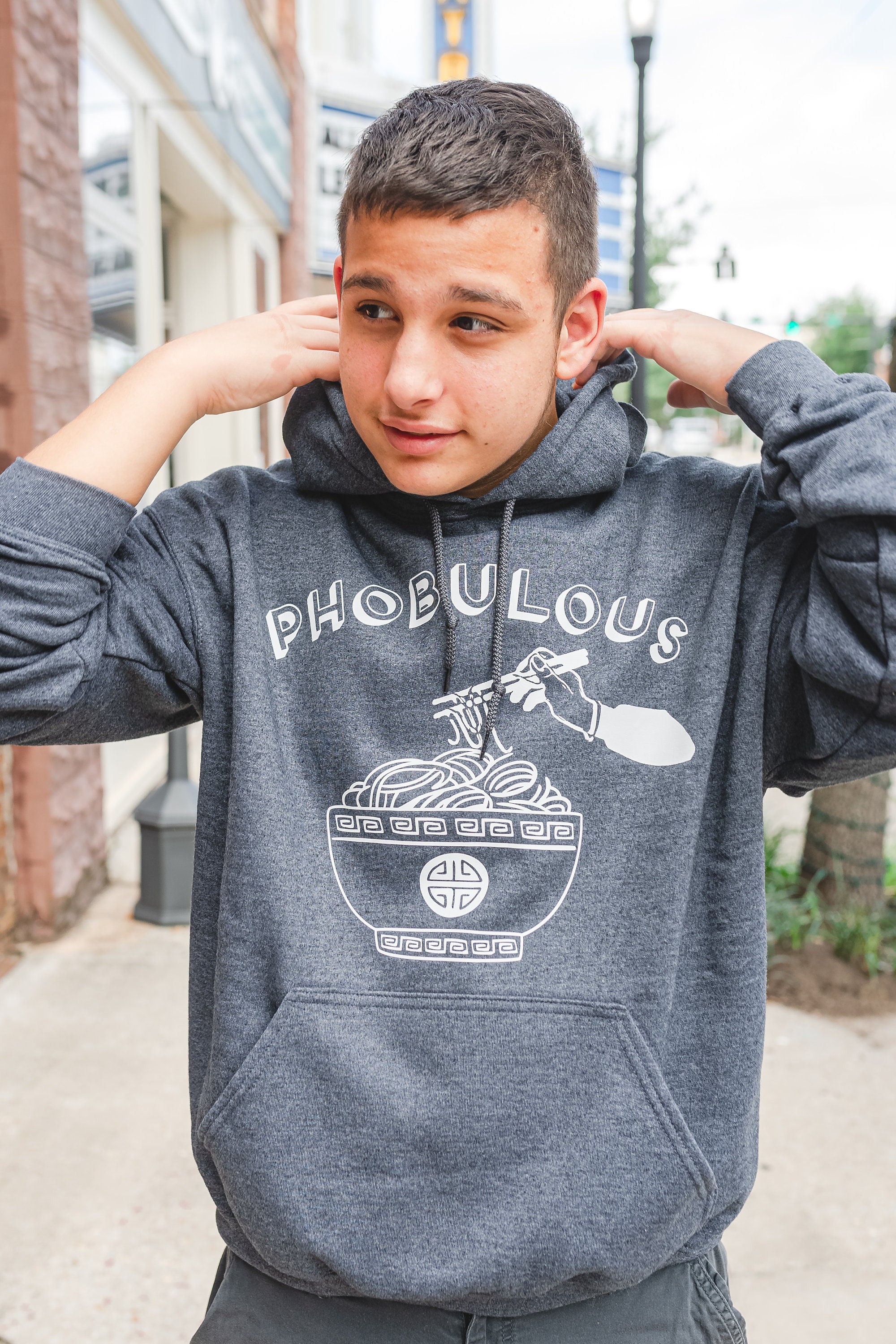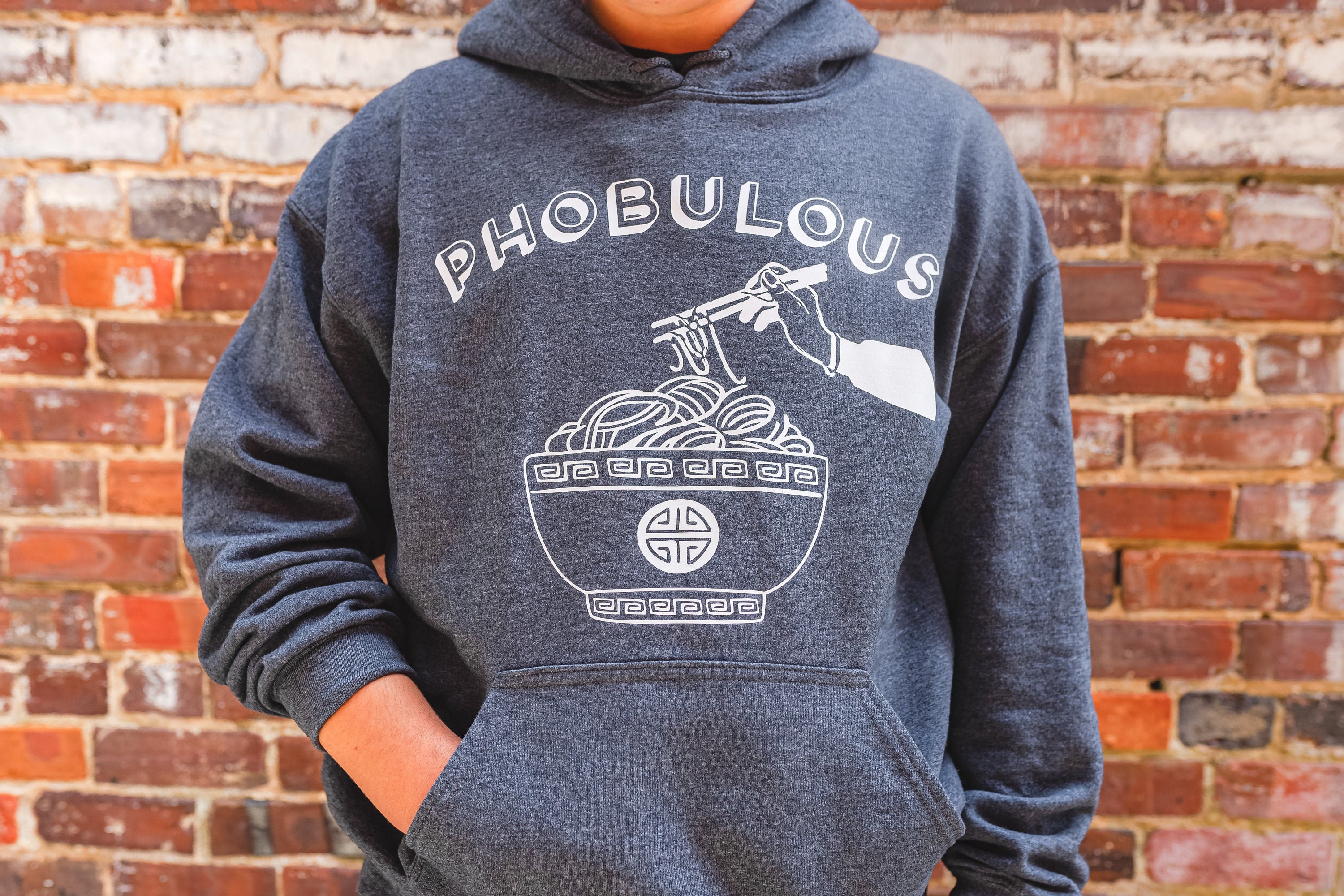 Phobulous unisex soft cotton and polyester hoodie jacket with white text. Perfect for your pho loving self or friend! Treat the home chef or self-proclaimed food connoisseur in your life!